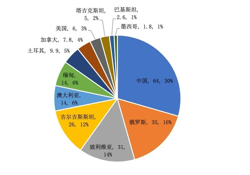 ——中国出产消费环境。依托我国锂电池财产需求增加,我国一曲是全球锂资本消费量最大的国度,同时从导全球锂盐加工市场。按照中国有色金属工业协会锂业分会统计,2023年全球锂及其衍生物产量折合碳酸锂当量(LCE)约111。6万吨,此中我国根本锂盐产物产量折合碳酸锂当量(LCE)约为81。5万吨,占全球比沉为73%。按照中国有色金属工业协会锂业分会数据,2023年我国进口锂精矿约401万吨,次要来历于、巴西、津巴布韦等国,同比增加约41%。净进口碳酸锂14。91万吨,同比增加约18。6%。——中资企业全球结构。近年来,中国企业正在全球锂矿进行投资结构,笼盖、智利、阿根廷、墨西哥、刚果(金)、津巴布韦、马里、塞尔维亚、等国度,沉点收购拉丁美洲和非洲的矿场股份。国内正在海外投资锂矿的次要企业包罗天齐锂业、盛新锂能、赣锋锂业、紫金矿业、宁德时代、中矿资本、华友钴业等,但近期天齐锂业正在智利、赣锋锂业正在墨西哥等国的矿产权属变故被打消或变卖,疑惑除来自地缘(如美国)的压力,海外投资面对的风险上升。——矿产特征和使用范畴。石墨次要使用正在核能、新能源、储能、节能环保、航空、航天、生物医药、电子消息、新材料、高端配备等范畴。石墨正在军事范畴也有普遍和主要的用处,例如,石墨是导弹、火箭、现身飞机、激光兵器和石墨的主要原材料之一,而石墨是特地用来敌方电力系统和电子设备的兵器。石墨是电动汽车电池出产的环节矿物(做为电池负极材料),来自这一范畴的需求正正在激增,2018年以来以电池为最终用处的全球石墨市场规模增加了250%。——全球储量分布。按照美国地质查询拜访局(USGS)数据,截止2023岁暮,全球天然石墨储量为2。8亿吨,此中中国石墨储量7800万吨,巴西石墨储量7400万吨,莫桑比克储量2500万吨,马达加斯加储量2400万吨,坦桑尼亚储量1800万吨,TOP5全球次要石墨山储量国度的储量合计占比78%。其他具有储量的国度包罗俄罗斯、印度、土耳其、墨西哥、朝鲜、韩国、斯里兰卡、乌兹别克斯坦、越南等。